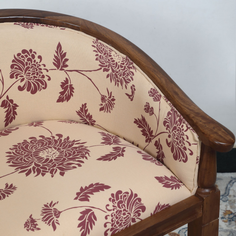 Our Eilish armchair makes use of sturdy Sheesham wood to project a stunning look in your home. Pictured here in well-polished teak finish, we are of the opinion that it is going to rule the roost in your home. With a rounded back, this armchair is a comfortable, cushioned piece to sit smugly in any surroundings. Available in three different floral motifs, the upholstery fabric is an all-weather choice. Framed for efficiency and ease, this is the picture-perfect collectable you have been dreaming of for a long time.